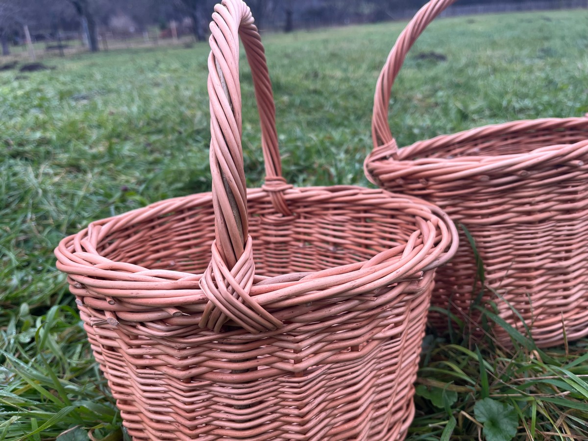 Malý ručně vyráběný Dětský košíček z loupaného proutí, ideální na velikonoční sbírání vajíček nebo na dětské poklady.